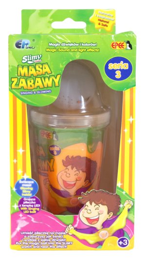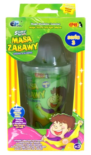 Užite si bezva zábavu s tým slizom. Vďaka originálnej švajčiarskej receptúre je sliz bezpečný a zdravotne nezávadný. Má príjemný zápach a konzistenciu, ktorá vám umožní veľa zábavy. Môžete ho naťahovať, rozťahovať do tenkej blany, stláčať alebo vytvárať smiešne prdivé zvuky. Pokiaľ do neho vložíte guličku, ktorá je súčasťou balenia, začne gulička blikať a vydávať zvuky. Vyžaduje 2 × 1.5V LR41 batérie, sú súčasťou balenia. Vhodné pre deti od troch rokov.