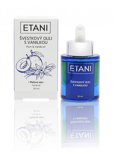 ETANI Slivkový olej s vanilkou má zlatistú farbu a nádhernú vôňu, ktorá pripomína marcipán. Veľmi dobre sa vstrebáva do pleti, neupcháva póry a nezanecháva pocit mastnosti. ETANI Slivkový olej s vanilkou dopraje vašej pleti regeneráciu, žiarivý vzhľad a vláčnosť. Zaujímavosťou je, že dopraje vašej pleti ešte vyššiu ochranu pred voľnými radikálmi ako arganový olej. Slivkový olej je vhodný pre toho, kto trpí na suchú, citlivú alebo podráždenú pleť. Olej má protizápalové vlastnosti, ktoré pomáhajú znižovať problémy s podráždenou pleťou, redukujú vrásky a kruhy pod očami. Výhody a prednosti ETANI Slivkového oleja s vanilkou? Hydratácia a regenerácia pleti. Upokojenie pleti. Protizápalové účinky. Pružnosť pleti. Aké sú hlavné účinné látky v oleji? Vanilka - Na čo je vlastne dobrá v kozmetike vanilka? Vanilka sa môže pridávať do parfumov, krémov, olejov a ďalších kozmetických prípravkov, je výborným antioxidantom. Pomáha pri kožných ochoreniach ako je napr. dermatitída alebo ekzémy.
