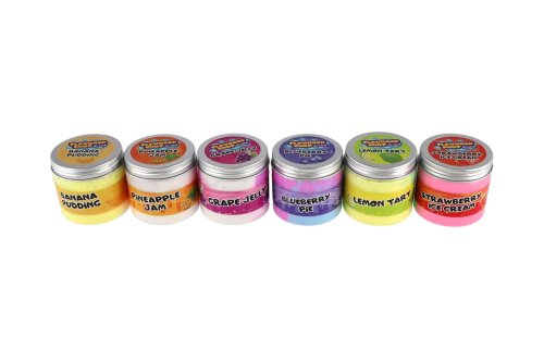 Farebný a voňavý sliz, ktorý zaručí deťom hodiny zábavy. Hmota je mäkká, tvárna a príjemná na dotyk – je možné ju naťahovať, stláčať, tvarovať a kombinovať s doplnkami. Dúhové farebné prevedenie s atraktívnym vzhľadom. Rôzne varianty s motívmi obľúbených príchutí (napr. jahodová zmrzlina, čučoriedkový koláč, banánový puding, ananásový džem, citrónový koláč, hroznový džem). Praktická uzatvárateľná dóza (cca 6 × 6,2 cm) – sliz nevysychá.