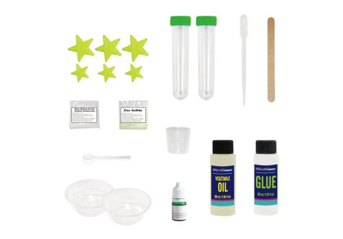 2 skúmavky, materiál a pomôcky na výrobu slizu 6 fluorescenčných hviezdičiek návod. Odporúčaný vek: od 8 rokov