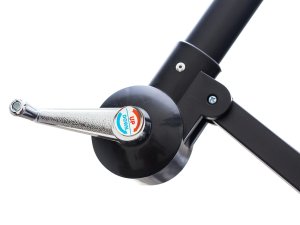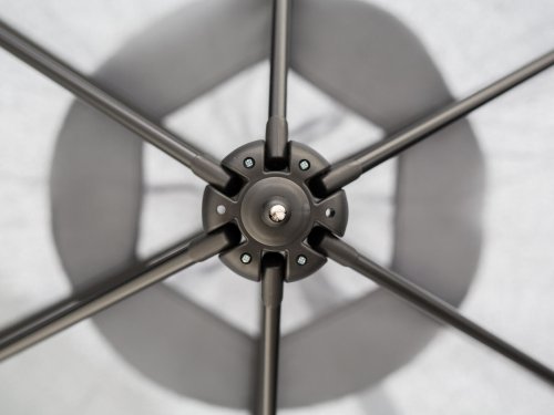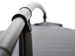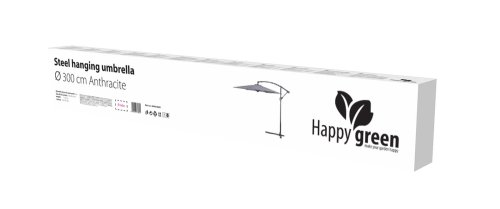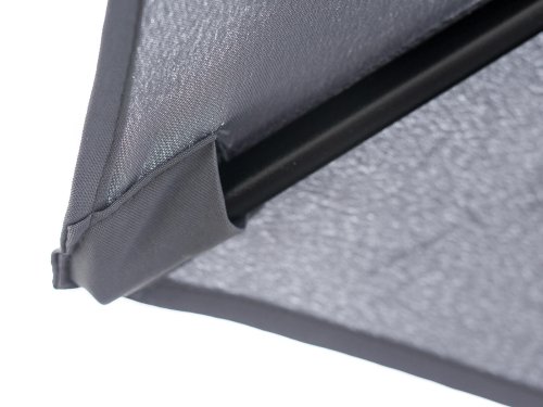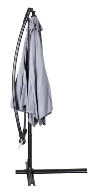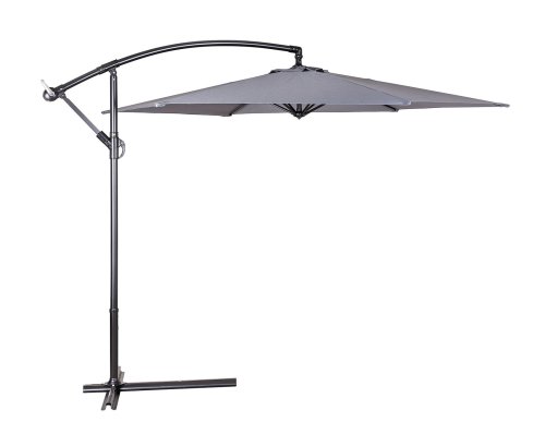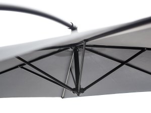 Závesný slnečník priemer 300 cm má 6 oceľových rebier 12 x 18 mm, je vyrobený z polyesteru 160 g/m2. Pevná oceľová tyč má priemer 4,8 cm. Stojan, ktorý je súčasťou výrobku, je možné zaťažiť betónovými dlaždicami pre zvýšenie celkovej stability. Otváranie slnečníka sa vykonáva kľučkou. Navíjací systém má plastové puzdro s kovovým navíjacím mechanizmom - kovová kľučka, kovový hriadeľ a kovový pastorok s kovovou závlačkou. Farba šedá.