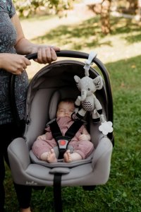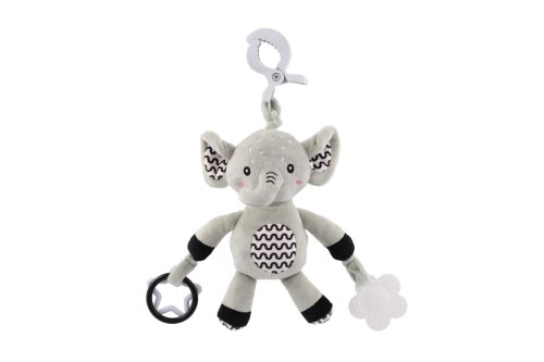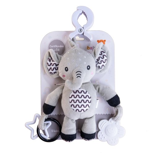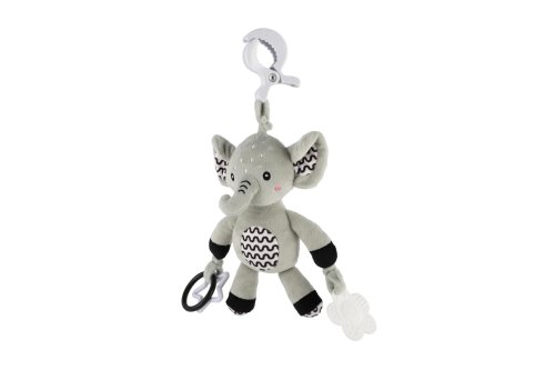 Roztomilý plyšový sloník je ideálna hračka pre bábätká už od narodenia. Vďaka praktickému závesnému klipu ho ľahko upevníte na kočík, postieľku, autosedačku alebo hrazdičku. Bábätko bude mať svojho hebkého kamaráta vždy pri sebe – doma aj na cestách. Sloník je vyrobený z mäkkého, na dotyk veľmi príjemného plyšu, ktorý nabáda na maznanie. V telíčku má ukrytú jemnú hrkálku, ktorá podporuje sluchový rozvoj a prirodzene upútava detskú pozornosť. Na koncoch ručičiek sú pripevnené bezpečné plastové tvary (hviezdička a kytička), ktoré rozvíjajú hmat, jemnú motoriku a môžu slúžiť aj ako hračka na žužlanie. Má jemne šuštiace uši. Hračka je certifikovaná v SR, takže spĺňa vysoké bezpečnostné štandardy pre najmenšie deti.