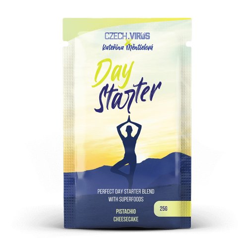 Day Starter je komplexný produkt v štýle Smoothie s obsahom superpotravín pre ten najlepší štart dňa. Základ tvorí kvalitný hrachový izolát a celozrnná ovsená múka pre jednoduché a ľahko stráviteľné doplnenie makroživín po nočnom pôste. Obsahuje prírodný kofeín z guarany a zeleného čaju na postupné a príjemné nakopnutie bez nežiaduceho dojazdu. Ďalej tiež kombináciu citrulínu s červenou repou na prekrvenie. Zmes je obohatená o našu skvelú zelenú zmes, ktorú poznáte z best-selleru Super Greens PRO V2.0 (spirulina, chlorela, mladý jačmeň a mladá pšenica) vrátane V-AntiOxi-Blend® (zmes antioxidantov), V-Shrooms-Blend® (zmes húb) a V-Dige-Blend® (zmes tráviacich enzýmov). Kvalitné živiny Day Starter obsahuje kvalitné a ľahko stráviteľné makroživiny. Proteín zastupuje izolát z hrachového proteínu (Pisane®), ktorý má podľa in vivo štúdií perfektnú využiteľnosť, sacharidy potom v menšej miere celozrnná ovsená múka. Samozrejmosťou je minimum cukrov (bez pridaných cukrov), aby produkt nemal negatívny vplyv na hladinu cukru v krvi. Ďalej tiež obsahuje slušné množstvo vlákniny, ktorá v mnohých jedálničkách stále chýba. Dávkovanie produktu je možné individuálne upraviť podľa nárokov vášho jedálnička a vašich cieľov. Zmes pre ranný boost Day Starter obsahuje starostlivo vybrané ingrediencie, ktoré pomôžu telu s jednoduchším naštartovaním bez nežiaducich účinkov. Základom je zmes na prekrvenie, ktorú zastupuje L-Citrulín a Sabeet® (extrakt z červenej repy). Ďalej produkt obsahuje zmes prírodného kofeínu z dvoch zdrojov - guarany a zeleného čaju. Táto zmes dodá telu ľahké nakopnutie bez nežiaduceho crasha. Jedna dávka produktu obsahuje 67 mg kofeínu, čo je zhruba jedno espresso. Ďalšie látky a blendy Day Starter obsahuje látky, ktoré môžete poznať zo Super Greens (avšak nie je dobré produkt zamieňať, každý má iné zameranie!). Obsahuje zelené superpotraviny (spirulina, chlorela atď.), ďalej tiež naše blendy: V-AntiOxi-Blend® (zmes antioxidantov), V-Shrooms-Blend® (zmes húb) a V-Dige-Blend® (zmes tráviacich enzýmov). Pre podporu normálnej funkcie imunitného systému je tu pridaný aj Vitamín C. Textúra a chuť Day Starter svojou textúrou pripomína smoothie, teda hustejší drink a rovnako ako domáca smoothie ponúka veľké množstvo benefitov s výhodou extrémne rýchlej prípravy. Stačí použiť shaker a vodu, nie je nutné používať mixér alebo špiniť ďalší riad. Chuť sme vyladili do veľmi príjemného a vyváženého chuťového profilu, ktorý poteší väčšinu používateľov. Chuť je jemná a prírodná. Pre koho je produkt určený Day Starter je designovaný pre užívateľov, ktorí pred fyzickou aktivitou nemajú radi hutné jedlá, ale zároveň im nevyhovuje byť úplne nalačno. Pre ľudí, ktorí chcú po nočnom pôste telu dodať okamžite a ľahko využiteľné látky na príjemné prebudenie a nakopnutie. Produkt môže svojim zameraním slúžiť ako ľuďom z fitness, tak aj bežcom. Slúži tiež pre vyťažených ľudí, ktorí nestíhajú pred prácou/školou chystať pracne vlastnú smoothie a chcú mať čo najskôr pripravený chutný a výživný nápoj. Náš produkt ale v žiadnom prípade plne nenahrádza jedlo, slúži ako doplnok k jedálničku. Odporúčané dávkovanie: