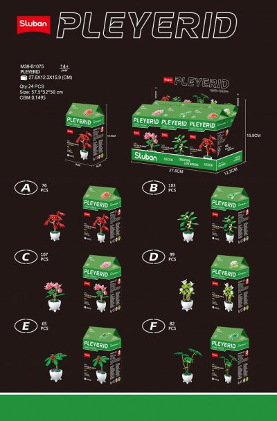 Stavebnice z radu „Potted Plants“ (rastliny v kvetináči) od spoločnosti Sluban ponúkajú originálne a kreatívne modely rastlín a kvetov určené na skladanie z klasických stavebných kociek, ktoré sú plne kompatibilné s ostatnými značkami, ako je napríklad LEGO®. Táto rastlina s bielymi kvetmi je vyrobená z odolného a bezpečného ABS plastu a podporuje rozvoj jemnej motoriky, kreativity a logického myslenia. Sady sú vhodné pre deti od 14 rokov aj dospelých nadšencov stavebníc. Modely bývajú často súčasťou tematickej kolekcie s niekoľkými rôznymi druhmi rastlín, ktoré je možné kombinovať a vytvoriť tak vlastnú mini záhradu z kociek. Každá sada obsahuje podrobný návod na zostavenie a je balená v praktickej papierovej krabičke . Hlavné vlastnosti: vhodné ako originálny darček alebo štýlová dekoráciakompatibilná s kockami ďalších výrobcovvyrobené z bezpečného ABS plastuobsahuje návod na zostaveniepodporuje kreativitu a rozvoj zručností