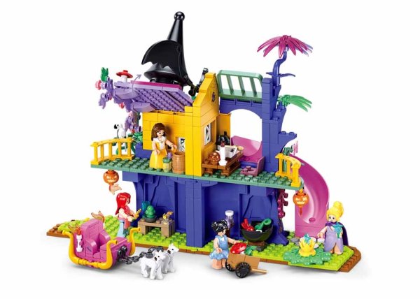 Kto by nechcel mať domček na strome! A tento stromový dom ponúka množstvo zábavy! Vylezte po rebríku a skĺznite sa po šmykľavke. Alebo sa radšej pohojdáte na hojdačke? Môžete tiež uvariť kúzelný lektvar. Inovatívna stavebnica Sluban je možné kombinovať s podobnými stavebnicami mnohých ďalších významných výrobcov. Sú vyrábané z kvalitného, nezávadného a odolného ABS plastu. Každá stavebnica je opatrená návodom na zostavenie a balená v pestro potlačenej papierovej krabičke . Hlavné vlastnosti: 435 dielikov, 4 figúrky inovatívne figúrky s otáčavými aj výkyvnými časťami telkompatibilné so stavebnicami ďalších výrobcov