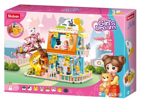 Dom s deviatimi mačičkami je stavebnica z kolekcie Girls Drem pre dievčatá. Prednosťou tejto stavebnice je figúrka, milovník mačiek, ktorá poskytla domov deviatim roztomilým mačičkám. Súčasti stavebnice je aj tlačený návod a nálepky. Inovatívna stavebnica Sluban je možné kombinovať s podobnými stavebnicami mnohých ďalších významných výrobcov. Sú vyrábané z kvalitného, nezávadného a odolného ABS plastu. Každá stavebnica je opatrená návodom na zostavenie a balená v pestro potlačenej papierovej krabičke . Hlavné vlastnosti: 521 dielikov, 1 figúrky