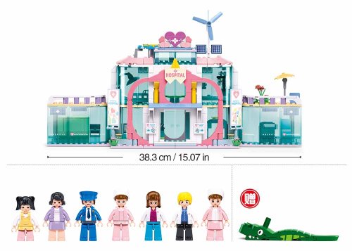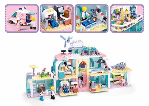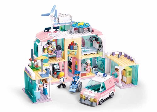 Nemocnica nie je miestom, kam by sa človek tešil. Pokiaľ však nejde o túto farebnú príjemnú budovu s ochotným a profesionálnym personálom vybavenú najmodernejšími prístrojmi s heliportom na streche. Inovatívna stavebnica Sluban je možné kombinovať s podobnými stavebnicami mnohých ďalších významných výrobcov. Sú vyrábané z kvalitného, nezávadného a odolného ABS plastu. Každá stavebnica je opatrená návodom na zostavenie a balená v pestro potlačenej papierovej krabičke . Hlavné vlastnosti: 668 dielikov, 7 figúrky inovatívne figúrky s otáčavými aj výkyvnými časťami telkompatibilných so stavebnicami ďalších výrobcov
