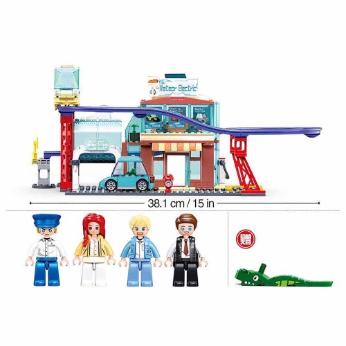 Chystáte sa navštíviť predajňu elektrovozidiel? Táto stavebnica v žiadnom prípade nemôže chýbať vo Vašej zbierke stavebníc zo série Metropolis. Navyše tieto inovatívne stavebnice Sluban je možné kombinovať aj s podobnými stavebnicami mnohých ďalších významných výrobcov. Sú vyrábané z kvalitného, nezávadného a odolného ABS plastu. Každá stavebnica je opatrená návodom na zostavenie a balená v pestro potlačenej papierovej krabičke. Hlavné vlastnosti: 379 dielikov, 4 figúrkyinovatívna figúrka s otáčavými aj výkyvnými časťami telkompatibilná so stavebnicami ďalších výrobcov