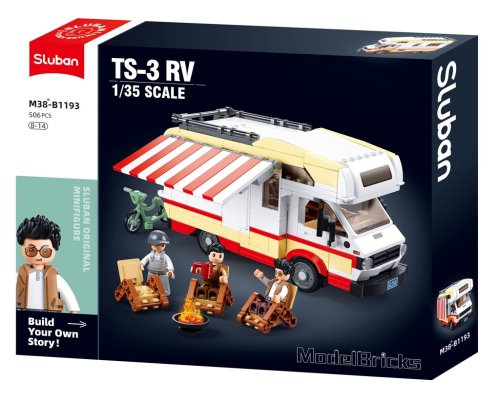 Obytné vozidlo nadchne každého malého cestovateľa. Inovatívna stavebnica Sluban je možné kombinovať s podobnými stavebnicami mnohých ďalších významných výrobcov. Sú vyrábané z kvalitného, nezávadného a odolného ABS plastu. Každá stavebnica je opatrená návodom na zostavenie a balená v pestro potlačenej papierovej krabičke . Hlavné vlastnosti: 506 dielikov, 3 figúrky meradlo 1 : 35 inovatívne figúrky s otáčavými aj výkyvnými časťami telkompatibilné so stavebnicami ďalších výrobcov