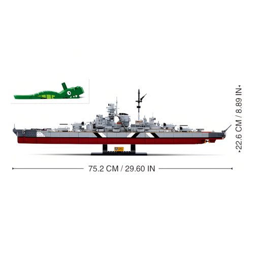 Bojová loď Bismarck 2v1 je stavebnica modelu nemeckej bojovej lode z druhej svetovej vojny. Model je v pomere 1:350 po zostavení dlhý 75cm a vysoký takmer 23cm. Súčasti stavebnice je tlačený návod a nálepky. Inovatívna stavebnica Sluban je možné kombinovať s podobnými stavebnicami mnohých ďalších významných výrobcov. Sú vyrábané z kvalitného, nezávadného a odolného ABS plastu. Každá stavebnica je opatrená návodom na zostavenie a balená v pestro potlačenej papierovej krabičke . Hlavné vlastnosti: 1849 dielikovťažká obtiažnosťmodel je v mierke 1:350 kompatibilný so stavebnicami ďalších výrobcov