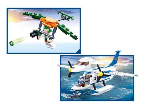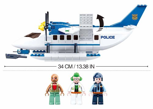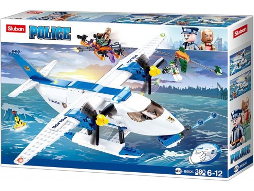 Hydroplán je po zostavení dlhý 34cm. Je vybavený odnímateľnou strechou pilotnej kabíny a guľometom na prove. Inovatívna stavebnica Sluban je možné kombinovať s podobnými stavebnicami mnohých ďalších významných výrobcov. Sú vyrábané z kvalitného, nezávadného a odolného ABS plastu. Každá stavebnica je opatrená návodom na zostavenie a balená v pestro potlačenej papierovej krabičke . Hlavné vlastnosti: 380 dielikov, 3 figúrky strednej obtiažnostinovatívne figúrky s otáčavými aj výkyvnými časťami telkompatibilných so stavebnicami ďalších výrobcov