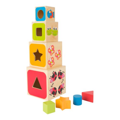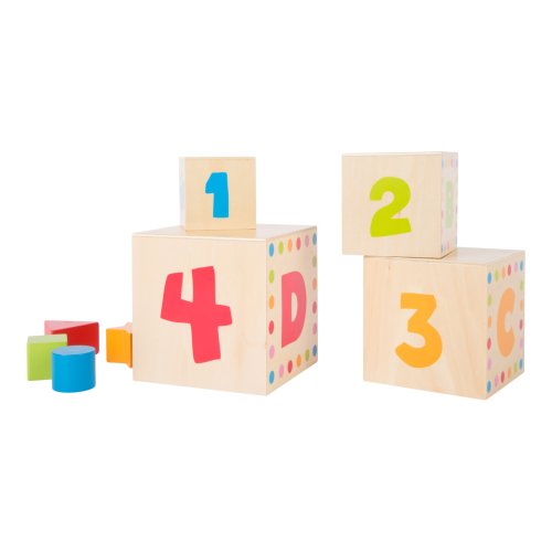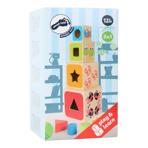 Drevené vkladacie kocky učia deti geometrickým tvarom, farbám, číslam aj písmenám. Geometrické tvary musia byť vložené cez správne otvory. Vytlačené písmená na kockách musia byť naskladané v správnom poradí, čo ponúka optimálny výukový nástroj. Upevňuje jemnú motoriku dieťaťa. Roztomilé motívy zvieratiek deti zaujmú a učenie pre nich bude veľkou zábavou. Hlavné vlastnosti: obsahuje 4 vkladacie kocky učia deti geometrickým tvarom, farbám, číslam a písmenám precvičuje jemnú motoriku detí