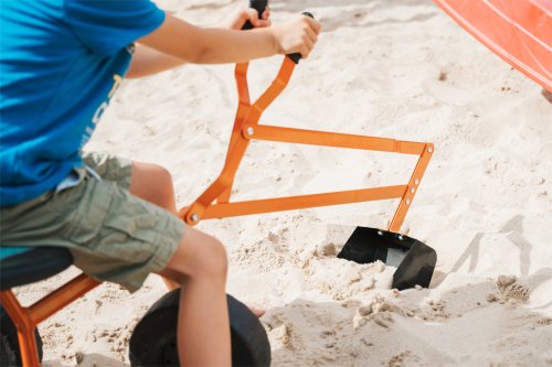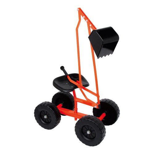 Bager z kovu s veľkými kolesami z umelej hmoty (Ø 20 cm) je hitom pre malých staviteľov. Je otočný o 360 °, má pohodlné sedadlo (výška sedadla 35 cm), je stabilný a zároveň ľahký. Tento bager je ideálnou hračkou na každom pieskovisku. Hlavné vlastnosti: pohyblivá lopata rýpadlá, ktorá sa ovláda dvoma páčkami (funkcia uchopenia a vysypania) kvalitné a bezpečné pre detskú bezstarostnú hru vyrobené v Nemecku