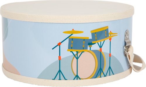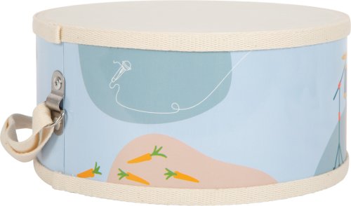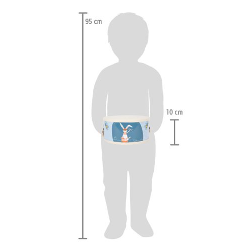 S týmto detským bubnom budú dobre vybavení všetci mladí, začínajúci bubeníci, pretože spolu s obľúbeným zajacom má čo ponúknuť ušiam publika! Bavlnený pásik bubna je možné nastaviť na ľubovoľnú dĺžku pomocou kovovej pracky. Paličky sú opatrené zvukovo tlmiacimi krytmi, aby to v detskej izbe nebolo príliš hlučné. Vďaka kombinácii prírodného dreva a moderných kontrastných farieb je to absolútny hit pre mladých hudobníkov! Tento detský bubienok hravo trénuje zmysel pre rytmus a rytmiku a taktiež koordináciu ruka-oko. Je ideálny pre ranú hudobnú výchovu! Hlavné vlastnosti: Rozvíja jemnú motoriku a kreativituHravý úvod do sveta zvuku a rytmuNastaviteľný a odnímateľný pásik bubánkuPaličky opatrené tlmiacimi krytmi