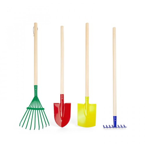 Zima je u konca! Je najvyšší čas, aby sa záhony pripravili na jar – alebo možno vytvoríte aj niekoľko nových? Pevná sada záhradného náradia obsahuje dvoje hrable, lopatu a rýľ. Vo svojich jasných farbách je vhodná pre akúkoľvek úlohu na záhrade. Živé farby a realistický dizajn uľahčujú mladým záhradníkom napodobňovať dospelých a učiť sa od nich. Po dokončení práce môžu byť nástroje riadne zavesené za povrazové konce. Toto záhradnícke náradie potrebuje už iba kvety a pôdu!