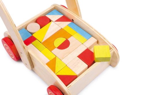 Toto stabilné chodítko je vyrobené z masívneho dreva a preglejky. Rôzne tvarované kocky (5 cm až 10 cm) sú vyrobené z bukového dreva. Trénuje zmysel pre rovnováhu a poskytuje hravú podporu pri učení chôdze. Rozvíja motoriku, rozpoznávanie farieb farieb a tvarov. Hrany sú hladké, zaoblené pre väčšiu bezpečnosť. Hlavné vlastnosti: rozvíja motoriku trénuje zmysel pre rovnováhu a rozpoznávanie farieb a tvarov poskytuje hravú podporu pri učení chôdze