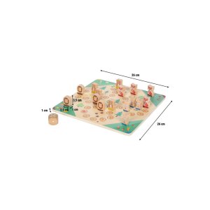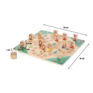 Hoďte kockou, hýbte figúrkami a užite si veľa zábavy so zvieratami! Táto prepracovaná hra Človeče, nehnevaj sa prináša obľúbenú klasiku v očarujúce zvieracej podobe. Medveď, líška, ježko alebo králik, tieto láskyplne navrhnuté drevené figúrky pozývajú deti k hre, pri ktorej sa hravou formou učia počítať a zároveň rozvíjajú jemnú motoriku. V tejto verzii hry môžu proti sebe súťažiť až štyria hráči a posúvať svoje figúrky po kvalitne potlačenej hernej doske s motívmi divokých zvierat. Súčasťou hry je extra veľká drevená kocka, ideálna pre malé detské ručičky, ktorá podporuje skoré počítacie schopnosti. Robustné drevené figúrky sa ľahko uchopujú, sú odolné a navrhnuté s ohľadom na potreby detí. Vďaka modernému dizajnu s viditeľnou kresbou dreva a vysokej kvalite spracovania sa táto hra stane obľúbenou súčasťou v každej detskej izbe a ponúkne dlhé hodiny spoločnej zábavy.