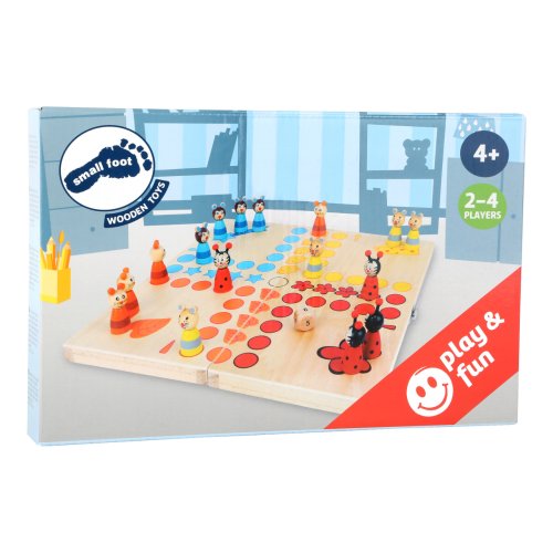 Klasická hra v smiešnom dizajne, kedy hráči hrajú so zvieracími postavičkami. Hra je pre 1-4 hráčov. Umiestnením herných dielikov sa trénuje jemná detská motorika. Roztomilé, pestrofarebné herné figúrky majú design vhodný pre deti. Hru je možné prakticky a bezpečne uložiť do drevenej krabice so západkou, takže je ideálny, keď ste na cestách alebo na výletoch. Balenie obsahuje 16 figúrok a 1 kocku. Hlavné vlastnosti: klasická spoločenská hra až pre štyroch hráčovrozvíja motoriku a logické myslenievyrobené z drevapraktické uzatvárateľné balenie