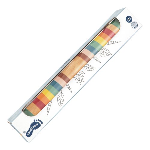 Kto počuje dážď? S touto dažďovou paličkou vyrobenou z dreva môžu deti kedykoľvek napodobniť zvuk dažďa alebo počúvať jemné šumenie vody. Pohyb dažďovej paličky vytvára príjemný, rovnomerný zvuk, ktorý pripomína tečúcu vodu alebo šumenie dažďových kvapiek. Zatiaľ čo v Južnej Amerike chceli medicinmani zvukom dažďovej paličky nalákať vytúžený dážď, tak u nás si fascinujúci, príjemný zvuk s upokojujúcim účinkom užívajú predovšetkým deti. Má ale aj všestranné použitie ako hrkálka, rytmický nástroj, zvuková hračka alebo upokojujúca zmyslová hra. Zmyslová hračka trénuje nielen akustické vnímanie, ale vďaka modernému farebnému prevedeniu je tiež skutočným pútačom do detskej izby. Hlavné vlastnosti: dažďová palica z robustného dreva možno použiť ako hrkálku, rytmický nástroj, zvukovú hračku alebo upokojujúcu senzorickú hruvhodné aj pre najmenšie deti podporuje rozvoj akustického a zrakového vnímania kvalitná potlač, moderná farebná schéma, mnoho prírodného dreva