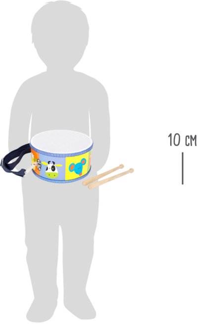 Rozprávkovo farebný bubon s roztomilými zvieracími hlavami pozýva k veselej vzbure v detskej izbe! To nie je hluk, to je hudba a radosť z pohybu na celej čiare! Tu si môžu deti precvičiť motoriku, vyšantiť sa a prebudiť záujem o hudbu! Vrátane nastaviteľného popruhu s 2 karabínkami a 2 bubienkovými paličkami (dĺžka: cca 18 cm). Hlavné vlastnosti: trénuje motoriku detínastaviteľný popruh