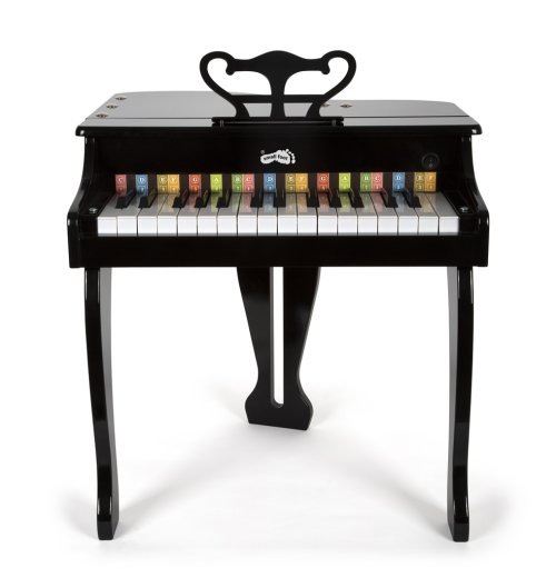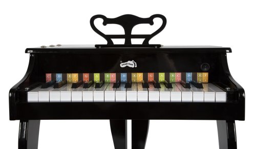 Máte doma malého hudobníka? Stále si niečo chrobáka, pohybuje sa do rytmu hudby, má rytmus v krvi? Možno prišiel čas na to, zaobstarať mu jeho prvý hudobný nástroj. Toto elektronické drevené detské klavírne krídlo v luxusnom dizajne má výbornú kvalitu zvuku a veko je možné otvoriť rovnako, ako pri skutočnom koncertnom krídle. Súčasťou je pohodlná stolička pre malého klaviristu, stojanček na upevnenie nôt a spevník. Noty v spevníku sú farebne rozlíšené a jednotlivé klávesy sú označené zodpovedajúcimi farebnými štítkami, aby sa deťom podľa nôt ľahko hralo. Je potrebné dokúpiť 4xAA batérie, ktoré nie sú súčasťou balenia. Nejedná sa o hudobný nástroj, ale iba o hračku . Hlavné vlastnosti: luxusná dizajnvýborná kvalita zvuku súčasťou stolička, spevník a stojan na upevnenie nôt rozvíja a podporuje lásku k hudbe 4xAA batérie - nie sú súčasťou balenia