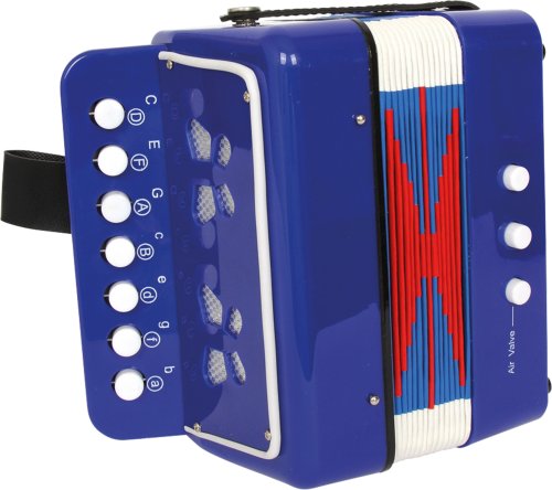 Hrať ako kedysi hral dedko ek. S touto modrou harmonikou môžu deti získať svoje prvé hudobné skúsenosti a motivuje ich k vlastnej hudobnej produkcii. Rozvíja aj hudobný cit a učí rozoznávať tóny. Motýliky na bokoch navyše upútajú pozornosť a dodajú tomuto detskému nástroju ešte zaujímavejší vzhľad. Vynikajúca ako príprava pred systematickou výučbou hry na skutočný hudobný nástroj. Pozor, táto ťahacia harmonika nie je skutočný hudobný nástroj, preto nemá profesionálny zvuk. Hlavné vlastnosti: kvalitné spracovanieveľkosť pre najmenšíchprehlbuje lásku k hudbe