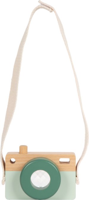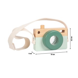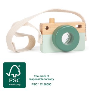 Tento roztomilý drevený fotoaparát vyrobený zo 100% FSC® certifikovaného dreva nadchne všetkých malých dobrodruhov! Ponúka kúzelný kaleidoskopický efekt, pohyblivé tlačidlo spúšte a praktické pútko na nosenie. Bez potreby batérií sa deti môžu hrať na malých fotografov, objavovať svet okolo seba a rozvíjať svoju fantáziu. Hľadáčik fotoaparátu tvorí kaleidoskop, vďaka ktorému deti uvidia svet farebne vzory a skreslené obrazy podnecujú zrakové vnímanie aj fantáziu. Kompaktné drevené telo s moderným vzhľadom padne skvele do detských rúčok. Pohyblivé tlačidlo spúšte trénuje obratnosť a textilný popruh so suchým zipsom zaisťuje bezpečné a pohodlné nosenie. Či už sa deti hrajú na fotení doma, alebo skúmajú svet vonku, táto hračka podporuje nápodobu dospelých a dáva priestor voľnej hre bez technológií, stačí len fantázie a chuť objavovať. Hlavné vlastnosti: vyrobené zo 100% FSC® certifikovaného dreva rozvíja jemnú motoriku, vnímanie tvarov a farieb podporujú predstavivosť a kreativitu. prísne environmentálne a sociálne požiadavky. Značka FSC® na výrobku znamená, že svojim nákupom pomáhate chrániť lesy a podporujete šetrné, zodpovedné či prírode blízke hospodárenie, vďaka ktorému sú naše lesy stabilnejšie, zdravšie, majú prirodzenú druhovú skladbu a lepšie odolávajú negatívnym následkom klimatických zmien.