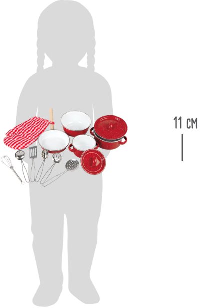 Perfektná začiatočnícka sada pre začínajúcich mladých kuchárov, ktorí radi pripravujú lahôdky. S touto sadou v jasne červenej farbe s rôznymi kuchynskými potrebami, ako je hrniec, panvica, chňapka, či iné kuchynské pomôcky, sa každé dieťa stane majstrom kuchárom. Ideálne pre rodičovské a detské interaktívne hry a skvelý spôsob, ako podporiť kreatívne a nápadité hranie. Sada obsahuje: 1 chňapka1 veľká panvica s vekom1 malá panvica s vekom1 panvica, 1 panvica1 metla1 naberačka na polievku1 štrbinová naberačka1 špachtľa1 štrbinová lyžica1 lyžica na cestoviny Hlavné vlastnosti: obsahuje 11 dielov iku