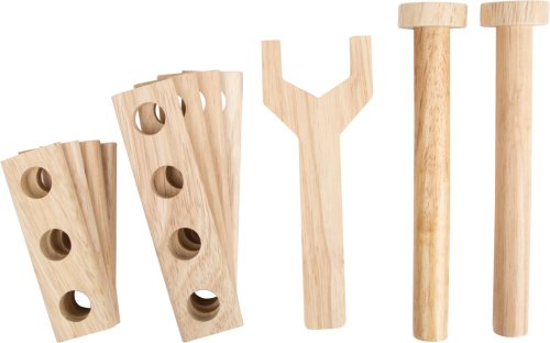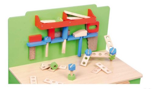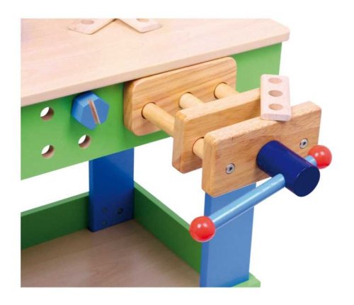Malí remeselníci si s týmto praktickým pracovným stolom rozvinú svoje jemné motorické schopnosti. S doplnkami, ako sú kladivo, skrutky, matice, skrutky a mnoho ďalšieho, sa rozhodne nebudú nudiť. Budú nadšení týmto skvelým pracovným stolom s veľkou pracovnou plochou. Detské ruky môžu trénovať jemnú motoriku pri zatĺkaní, skrutkovaní, meraní a rezaní. Pracovný stôl je pevne priskrutkovaný a skrutková svorka drží obrobky. Je to len malý krôčik na prácu s oteckom alebo dedom v ich hobby izbe. Hlavné vlastnosti: drevený ponk vrátane vybavenia podporuje kreativitu a predstavivosť zvyšuje jemnú motoriku a zručnosti inšpiruje ku kreatívnej a predstavivej hre