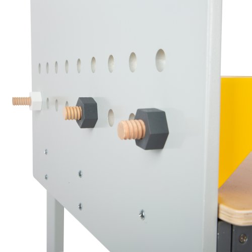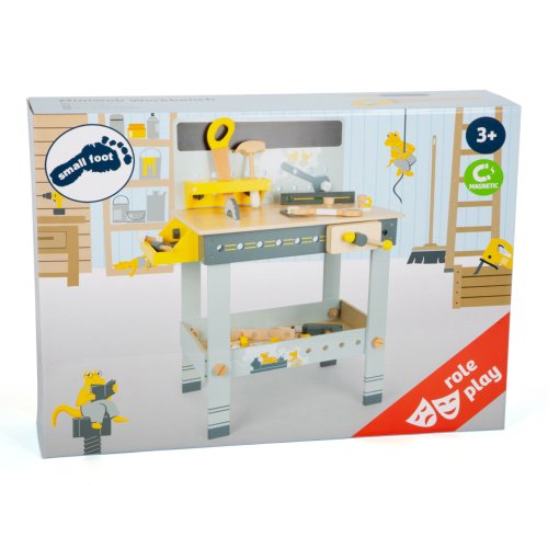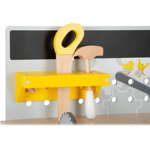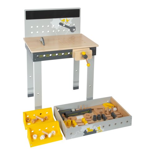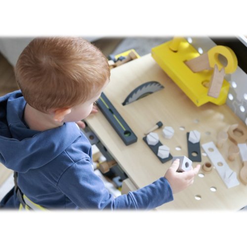 Rezanie pílkou, otáčanie skrutkami, zabíjanie kladivom! Spoločne s roztomilými Miniwobomi si deti otestujú svoju zručnosť a jemnú motoriku. Na ponku nájdete vybavenie ako 1 kotúčová píla, 1 elektrický skrutkovač s 3 nástavcami, 1 vodováha, 1 zverák, 1 kladivo, 1 kľúč, 1 pílka, 2 krabice s otvormi pre skrutky, 6 stavebných líšet, 16 skrutiek, 16 matiek, 3 klince. Deti si môžu svoj projekt načrtnúť na tabuľu, svoje náradie uložiť do malých boxov, ktoré môžu zavesiť z boku ponku. Deti vám dokonca môžu pomôcť so zložením ponku! Minimalistické farby, mnoho viditeľného dreva, jednoducho perfektná hračka pre malých domácich majstrov a domácich majstrov. Hlavné vlastnosti Úložné boxy, ktoré môžete naskrutkovať z boku ponkuOsem ks drevených nástrojov a rôzne doplnkyTabuľka na načrtnutie projektuDeti môžu pomôcť so zložením ponkuPekné detské ilustrácie Miniwob MiniwobZoznámte sa s malými woby, nadšenými krokodílími domácich majstrov! S ich pomocou ide všetky práce ako po masle a žiadna stavba nie je dosť veľká a premyslená. Pestrá rada nástrojov a náradia poskytuje dokonalú zábavu pre všetkých malých remeselníkov, prostredníctvom ktorých môžu byť kreatívne a realizovať všetky svoje fantastické nápady. Jednotlivé sady je možné medzi sebou kombinovať a rozširovať s rastúcimi schopnosťami detí. Vďaka jednotiacemu farebnému motívu a vyobrazeniam roztomilých Wobov je možné vytvoriť jedinečný a ucelený dielenský kútik, ktorý bude zároveň hodnotnou stavebnicou rozvíjajúcou zručnosť a predstavivosť.