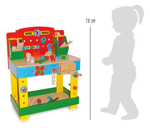 Ako robiť prácu s drevom ako dospelí? S týmto krásnym pracovným stolom z masívneho bukového dreva a farebnej preglejky to pôjde skvele. Chalani zažijú veľa skvelej zábavy. Pre nadšených malých domácich majstrov bude tento ponk inšpiráciou k tvorbe a poznávaniu náradia, materiálov a výrobných technológií. V neposlednom rade si domáci majstri prehĺbia manuálnu zručnosť. Súčasťou balenia je všetko podľa obrázku. Hlavné vlastnosti: robustná konštrukcia rozvíja hmatové a zmyslové schopnosti nabáda ku kreatívnej hre
