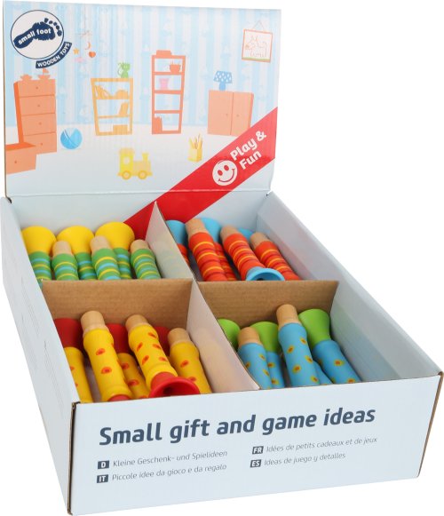 Je čas zažiariť na pódiu! Tieto hravo sfarbené drevené trúbky sú nielen pre oči atraktívnym kúskom, ale aj skvelým nástrojom pre malých objaviteľov. Zaručujú množstvo hodín zábavy a sú vhodným darčekom pre vašich začínajúcich muzikantov! Kedy bude náš prvý koncert? Hlavné vlastnosti: rozvíja hudobný talent pre deti od 3 rokov hravý úvod do sveta zvuku a rytmu prehlbuje lásku k hudbe