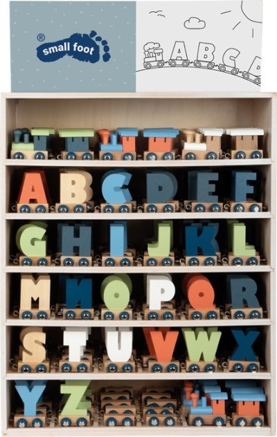 Zábava s polárnymi písmenami! Tento drevený displej zahŕňa drevené lokomotívy, vagóny, písmená abecedy, ktoré je možné jednoducho spojiť do jednotlivých slov. V rôznych kombináciách môžete zostavovať mená, skratky mien alebo slová jednotlivo. Ideálne pre malých začiatočníkov, ktorí sa formou hry zoznamujú s písmenami abecedy. Tiež poslúži ako pekná dekorácia do detskej izby. Všetky jednotlivé diely je možné samostatne objednať. Hlavné vlastnosti: 180dielny drevený displej písmenkových vláčikov modernej farby v kombinácii s prírodným drevempísmená podporujú učenie abecedy ideálnej dekorácie do detskej izby alebo darček zaoblenej hrany pre príjemný pocit z hry