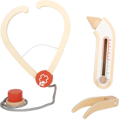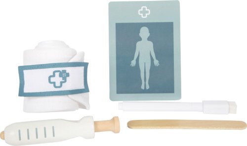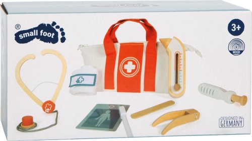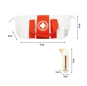 Pre malých lekárov a ich veľké misie! Táto praktická sada pre deti premení každú hru na skutočnú lekársku návštevu. Súčasťou je pevná látková taška so zipsom a pohodlnými rukoväťami, ideálna na prenášanie, a bohatá kolekcia kvalitných drevených hračiek: stetoskop, zasúvacia injekčná striekačka, teplomer s nastaviteľným ukazovateľom, pinzeta, špachtľa, obväz so suchým zipsom a popisovateľné karty pacienta. Deti môžu počúvať tlkot srdca plyšového medvedíka, aplikovať injekciu bábike alebo merať horúčku - možnosti hry sú nekonečné. Pohyblivé časti, ako zasúvacia striekačka a nastaviteľný teplomer, podporujú kreativitu a rozvoj koordinácie. Taška je ľahká a ľahko sa prenáša, perfektná na hranie doma, v herni, na cestách alebo v škôlke. Realistické prvky povzbudzujú deti k objavovaniu opatrovateľských rolí, trénovaniu jemnej motoriky a skúšaniu sociálnych zručností. Súprava zároveň rozvíja reč, empatiu a porozumenie ľudskému telu a zdraviu. Ideálne na prípravu na skutočné návštevy u lekára, alebo jednoducho na zábavné hranie rolí s bábikami, kamarátmi či súrodencami. Hlavné vlastnosti: lekárska taška s rozsiahlym zdravotníckym materiálom z dreva obsahuje: injekčná striekačka, teplomer, zapisovateľná karta vrátane popisovača, stetoskop, obväz, špachtľa a pinzetaodolná látková taška so zipsom - kompaktná a prenosná ideálna pre hranie rolí, sociálny rozvoj a motorické zručnosti