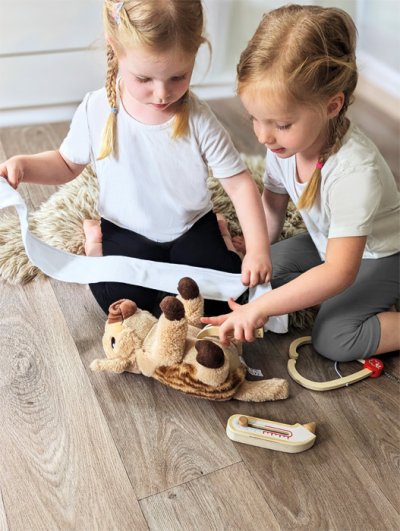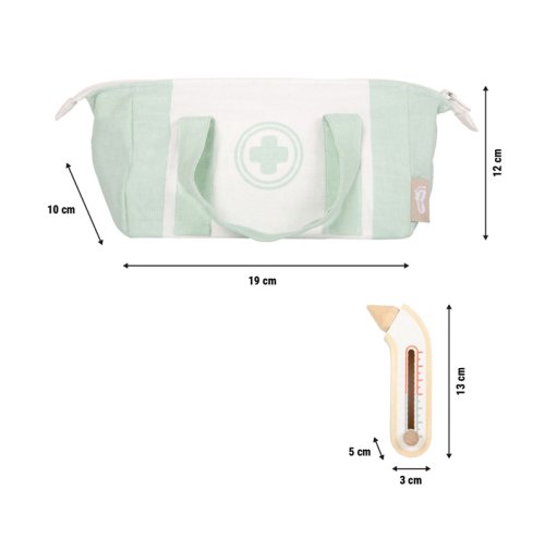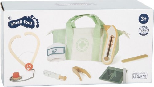 Pre malých lekárov a ich veľké misie! Táto praktická sada pre deti premení každú hru na skutočnú lekársku návštevu. Súčasťou je pevná látková taška so zipsom a pohodlnými rukoväťami, ideálna na prenášanie, a bohatá kolekcia kvalitných drevených hračiek: stetoskop, zasúvacia injekčná striekačka, teplomer s nastaviteľným ukazovateľom, pinzeta, špachtľa, obväz so suchým zipsom a popisovateľné karty pacienta. Deti môžu počúvať tlkot srdca plyšového medvedíka, aplikovať injekciu bábike alebo merať horúčku - možnosti hry sú nekonečné. Pohyblivé časti, ako zasúvacia striekačka a nastaviteľný teplomer, podporujú kreativitu a rozvoj koordinácie. Taška je ľahká a ľahko sa prenáša, perfektná na hranie doma, v herni, na cestách alebo v škôlke. Realistické prvky povzbudzujú deti k objavovaniu opatrovateľských rolí, trénovaniu jemnej motoriky a skúšaniu sociálnych zručností. Súprava zároveň rozvíja reč, empatiu a porozumenie ľudskému telu a zdraviu. Ideálne na prípravu na skutočné návštevy u lekára, alebo jednoducho na zábavné hranie rolí s bábikami, kamarátmi či súrodencami. Hlavné vlastnosti: lekárska taška s rozsiahlym zdravotníckym materiálom z dreva obsahuje: injekčná striekačka, teplomer, zapisovateľná karta vrátane popisovača, stetoskop, obväz, špachtľa a pinzetaodolná látková taška so zipsom - kompaktná a prenosná ideálna pre hranie rolí, sociálny rozvoj a motorické zručnosti k dispozícii