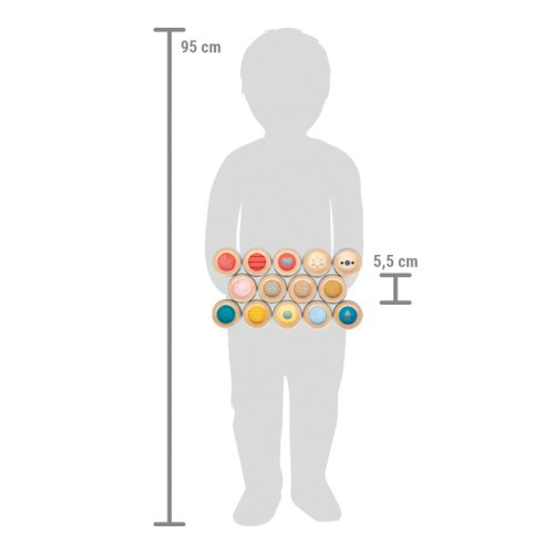 Dotykové pexeso "Sensory" je hra, ktorá oslovuje zmysly a podporuje rozvoj detských zručností. S touto hmatovou hrou pexeso z produktového radu "Sensory" je cieľom dotýkať sa rôznych povrchov a nájsť zodpovedajúce dvojice. Hra má 28 herných dielikov so 14 rôznymi povrchmi, ktorých sa dá dotýkať a triediť. Sedem párov s textilnou výplňou a sedem párov s rôznymi tvarmi, ktoré majú rôzne štruktúry, tvary a farby. Hru je možné hrať samostatne alebo vo viacerých hráčoch. Hra je vhodná najmä pre deti a osoby so zrakovým postihnutím. Ergonomicky tvarované drevené herné prvky vďaka svojej veľkosti a vyčnievajúcemu veku boxu ľahko uchopia deti aj starší ľudia. Po dokončení hry sa všetky herné prvky dajú uložiť do bavlneného vrecka. Táto zmyslová hra nielen podporuje rozvoj hmatu a pamäte, ale tiež sľubuje množstvo rozmanitej hernej zábavy vďaka rôznym variantom hry. Možno ju hrať aj ako hru vizuálnej pamäte, pretože rôzne povrchy majú aj rôzny vzhľad. Jedným zo spôsobov, ako upraviť úroveň obtiažnosti v závislosti od veku a schopností detí, je, či môže herný prvok zostať prevrátený alebo musí byť znovu otočený späť. Je to všestranná spoločenská hra orientovaná na pamäť, ktorá trénuje hmat a zároveň je veľmi zábavná. Hlavné vlastnosti: vhodná hra deti a osoby so zrakovým postihnutím podporuje rozvoj hmatu a pamätirozmanité textúryvizuálne podnetybavlnené vrecko na uloženie
