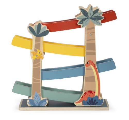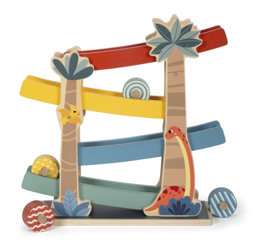 Pevná drevená dráha s ilustráciou roztomilých dinosaurov je vyrobená z vysoko kvalitného dreva a prináša zábavu do každej detskej izbičky. Dráha má 4 rampy, každú v inej farbe, a 4 rôzne farebné vzorované disky, ktoré z rampy nevypadnú a rýchlo sa kotúľajú z horného poschodia až úplne dole. Pozorujte, ako sa menia vzory na diskoch, keď sa dajú do pohybu. S hračkami z produktového radu "Dino" sú témou fascinujúce prehistorické tvory, ktorí upútajú pozornosť ľudí všetkých vekových kategórií. Tieto drevené hračky podporujú rozvoj motorických zručností, inšpirujú detskú kreativitu a predstavivosť a povzbudzujú deti, aby sa dozvedeli viac o prírode a histórii týchto pravekých obrov. Hlavné vlastnosti: robustná konštrukcia so širokou základňou rozvíja predstavivosť a koordináciu ruka-okovzhľad prírodného dreva v kombinácii s farebnými obrázkami Značka a certifikát FSC® (Forest Stewardship Council) zaručuje, že drevo, z ktorého bol produkt vyrobený, nebolo vyťažené nelegálne a pochádza z lesov obhospodarovaných šetrným či prírode blízkym spôsobom, v ktorom sú dodržiavané prísne environmentálne a sociálne požiadavky. Značka FSC® na výrobku znamená, že svojim nákupom pomáhate chrániť lesy a podporujete šetrné, zodpovedné či prírode blízke hospodárenie, vďaka ktorému sú naše lesy stabilnejšie, zdravšie, majú prirodzenú druhovú skladbu a lepšie odolávajú negatívnym následkom klimatických zmien.
