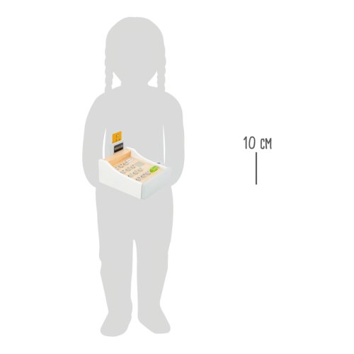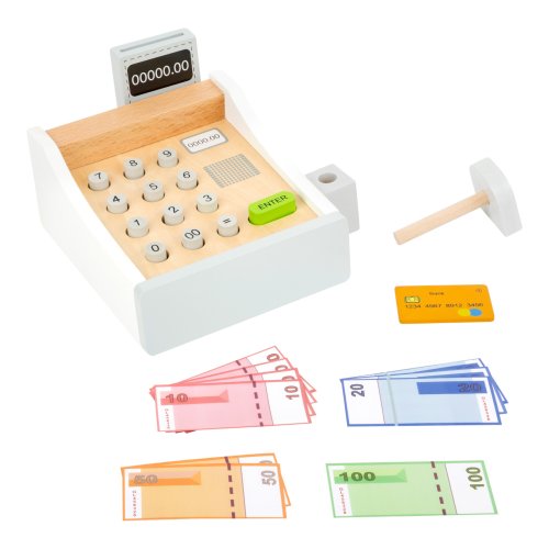 Peniaze sa len sypú! Táto krásna drevená pokladňa patrí do každej dobre organizovanej detskej predajne. Hranie s touto hračkou pomáha deťom pochopiť ceny tovaru a manipuláciu s peniazmi. Súčasti sú bankovky na hranie a drevené kreditné karty, ktoré sa pohodlne zmestia do spodnej zásuvky. Cena zakúpeného tovaru môže byť zadaná na klávesnici. Kto je ďalší na rade? Hlavné vlastnosti: drevená pokladňa vrátane skenera, čítačky kariet, hracích peňazí a drevené kreditné kartyučia deti spoznávať peňažné čiastky a cenyideálny doplnok pre obchod na hraniepodporuje aktívne hranie rolí a rozvoj sociálnych zručností detí pri hre
