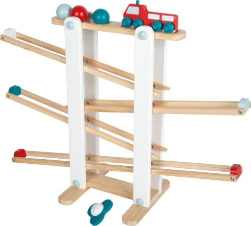 Nenechajte si ujsť rýchlu guličkovú dráhu vo formáte XL s extra veľkými guličkami! Hodiny zábavy sú zaručené ak necháte gúľať 3 masívne drevené guličky po štyroch rampách. Táto extra veľká, robustná dráha vyrobená z kvalitného masívneho dreva ponúka nielen množstvo zábavy, ale taktiež podporuje rozvoj motoriky a koordináciu ruka-oko. Súčasťou balenia sú 3 farebné guličky, hasičské vozidlo a tiež otočné guličkové koleso. Jednotlivé guličky a tiež autíčko predvádzajú fascinujúcu a zábavnú show na svojej ceste z úrovne do úrovne na kaskádovej dráhe. Prírodné drevo v kombinácii s farebnými detailmi robia dráhu modernú a nadčasovú, ktorá sa hodí do každej detskej izbičky. S touto guličkovou dráhou už nebude žiadna nuda! Hlavné vlastnosti: balenie obsahuje: 1x dráha, 1x hasičské vozidlo, 3x farebná gulička, 1x guličkové koloprírodné drevo s farebnými detailmi rozvíja motoriku a koordináciu ruka-oko