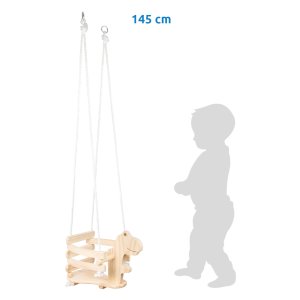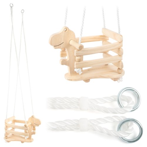 Táto hojdačka pre batoľatá z neošetreného masívneho dreva poteší malých fanúšikov dinosaurov. Flexibilné zabezpečenie dieťaťa zo všetkých strán, ktoré siaha až do výšky hrudníka, rovnako ako dve rukoväte, zaisťujú mladým „dinosaurovým jazdcom“ veľkú podporu, istotu a bezpečnosť. Ergonomický tvar sedadla tiež dáva detským nohám dostatočnú voľnosť pre väčšie hojdacie pohodlie. S robustnými lanami odolnými proti poveternostným vplyvom a kovovými krúžkami na rýchle zavesenie, možno použiť ako vonku, tak aj vo vnútri. Hlavné vlastnosti: vyrobená z masívneho drevaergonomický tvar sedadlazodpovednosť za kvalitu a bezpečnosť