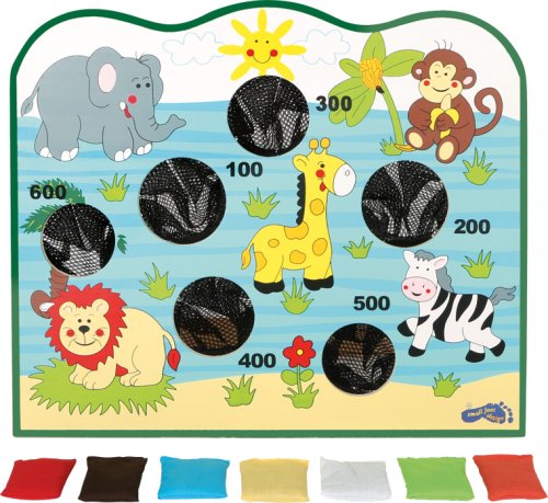Farebná hra na hádzanie do otvorov so sieťkou malými farebnými vrecúškami. Otvory sa líšia veľkosťou a čím menší je otvor, tým ťažšie je trafiť sa. Ale počet bodov motivuje - skúste to! Táto hra zaberá málo miesta a je ideálna pre hranie v miestnosti! Hlavné vlastnosti: precvičuje koordináciu ruka-oko a motoriku