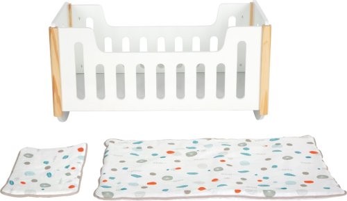 Táto moderná drevená kolíska v škandinávskom dizajne je ideálnou postieľkou s možnosťou jemného hojdania bábik či plyšových zvieratiek. Súčasťou balenia je vankúš a veľká perinka, ktoré sú povlečené do farebne neutrálnych obojstranných obliečok. Navyše je perinka dostatočne veľká, aby pod ňou pohodlne mohli spať bábiky alebo plyšové hračky do veľkosti 46 cm. Vysoko kvalitné, stabilné konštrukcie, zaoblené hrany, jemné farebné tóny robia z kolísky štýlový a kvalitný kúsok. Perfektná hračka do každej detskej izby. Balenie obsahuje: 1x posteľ, 1x vankúš, 1x prikrývka. Hlavné vlastnosti: drevená kolíska a postieľka v jednomnadrozmerná dekaobojstranná posteľná bielizeňrobustná konštrukcia, kvalitné spravovaniezaoblené hranypre bábiky a plyšáky do 46 cmškandinávsky dizajn, jemné farebné tóny Little ButtonRada atraktívneho príslušenstva pre bábiky Little Button ň. Zákazníkov ľahko zaujmú jednotným funkčným a decentným dizajnom využívajúcim priame línie a striedme neutrálne farby. Vďaka tomu spolu môžu vytvoriť ucelené harmonické súpravy, ktoré vkusne doplnia moderný interiér. Dômyselná konštrukcia a kvalitné spracovanie pomáhajú zaistiť vysokú stabilitu, bezpečnosť a dlhú životnosť. Založte s ich pomocou štýlový kútik pre bábiky, kde môžu Vaše deti rozvíjať svoju fantáziu a opatrovateľské schopnosti.