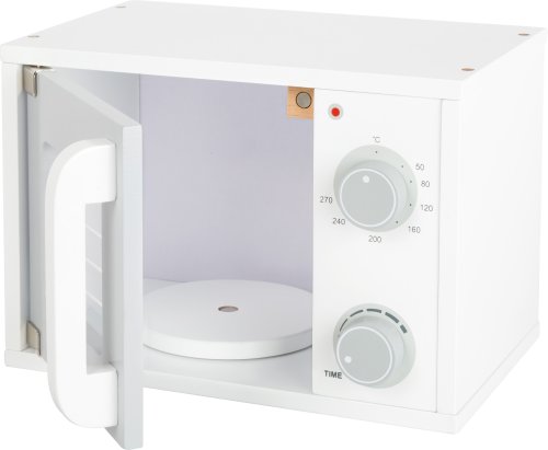 Cink ... a jedlo je pripravené! S touto drevenou mikrovlnnou rúrou môžu deti predstierať, že si ohrejú a pripravia pokrm ako v skutočnom svete. Tento realistický domáci spotrebič má otočný tanier a dvierka s magnetickým zatváraním. Pomocou otočných gombíkov je možné ľahko nastaviť funkcie teploty a času. Praktický domáci spotrebič, ktorý patrí do každej modernej detskej hry. Ideálny doplnok všetkých detských kuchyne . Hlavné vlastnosti: otočný tanier, cvakajúce ciferníky dvierka s magnetickým zatváraním