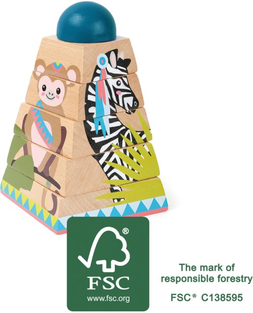 Na tejto nasadzovacej veži si deti precvičia svoju zručnosť. Kocky z prírodného 100% certifikovaného FSC® dreva majú krásnu farebnú potlač, ďalej tiež potrénujú priestorovú predstavivosť detí. Dokážu deti postaviť vežu správne, aby na každej strane bol daný obrázok? Farebná hračka, ktorá trénuje motoriku detí. Hlavné vlastnosti: 100% FSC drevotrénuje motoriku a priestorovú predstavivosť Značka a certifikát FSC® (Forest Stewardship Council) zaručuje, že drevo, z ktorého bol produkt vyrobený, nebolo vyťažené nelegálne a pochádza z lesov obhospodarovaných šetrným či prírode blízkym spôsobom, v ktorom sú dodržiavané prísne environmentálne a sociálne požiadavky. Značka FSC® na výrobku znamená, že svojim nákupom pomáhate chrániť lesy a podporujete šetrné, zodpovedné či prírode blízke hospodárenie, vďaka ktorému sú naše lesy stabilnejšie, zdravšie, majú prirodzenú druhovú skladbu a lepšie odolávajú negatívnym následkom klimatických zmien.