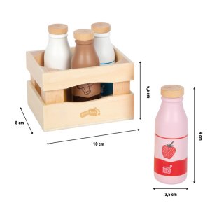 Doprajte deťom ešte viac zábavy pri hre na obchod alebo varenie! Táto kvalitná drevená debnička obsahuje štyri starostlivo spracované fľaše s mliečnymi nápojmi – klasické mlieko, ovsené mlieko, jahodové mlieko a čokoládové mlieko. Vďaka výrazným farbám a jednoduchým symbolom sú jednotlivé druhy ľahko rozpoznateľné aj pre menšie deti, a to aj bez znalosti čítania. Set je ideálny doplnok do detského obchodíku, kuchynky alebo pre akékoľvek kreatívne hranie na nakupovanie, prípravu jedla a servírovanie. Fľaše sú vyrobené z odolného dreva a majú prepracovaný dizajn prispôsobený detským rukám. Praktická drevená debnička nielen uľahčuje prehľadné uloženie, ale tiež podporuje poriadok pri hre. Či už sa deti hrajú na raňajky v izbičke, prevádzkujú vlastný obchod alebo chystajú piknik, tento set prináša realistický prvok do každodenného hrania. Podporuje rozvoj fantázie, komunikačných zručností i sociálnej interakcie. Zároveň skvele zapadá do produktového radu „fresh“ a dá sa ľahko kombinovať s ďalšími hernými potravinami. Hlavné vlastnosti: drevená debnička so 4 fľašami mliečnych nápojovjasnej farby a jednoduché symboly - vhodné aj pre deti bez čítaniaideálne pre hru na obchod, varenie i servírovanievyrobené z odolného drevapraktická debnička pre ľahké uloženie a poriadokprirodzený vzhľad vďaka viditeľnému podielu drevapodporuje fantáziu, komunikáciu a sociálnu