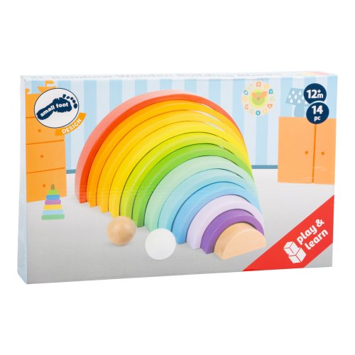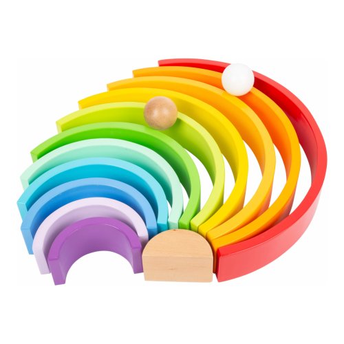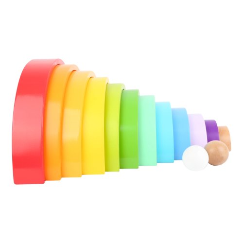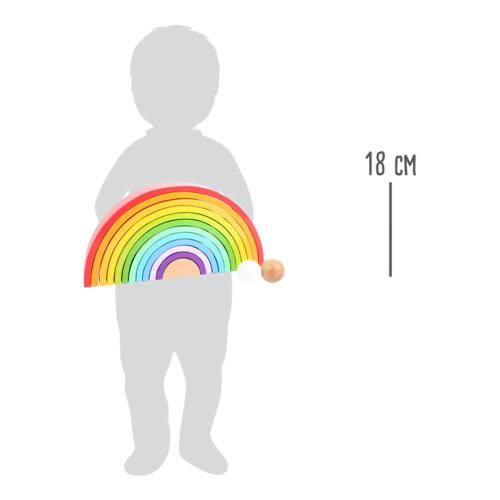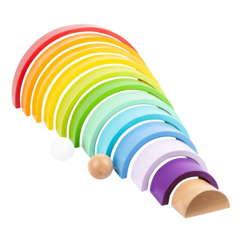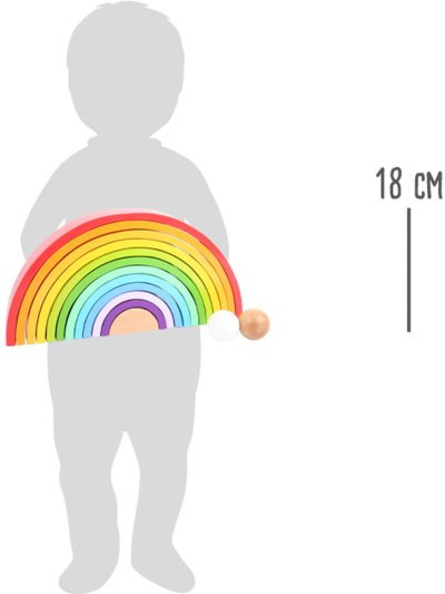 Farebná zábava zaručená! Dúha vrátane 2 drevených guličiek je vyrobená z odolného dreva v pestrých farbách. Zložená dúha patrí na každú policu v izbičke, má mnoho variácií skladania a hrania. Z dúhy je možné vytvoriť aj dráhy pre guličky, vysoká veža alebo hojdačka pre plyšové hračky. Je všestranná a podporuje tvorivosť detí. Ktorá farba je najkrajšia? Hlavné vlastnosti: Rozvíja motoriku dieťaťaPoužíva sa v MontessoriKvalitné spracovanie dreva