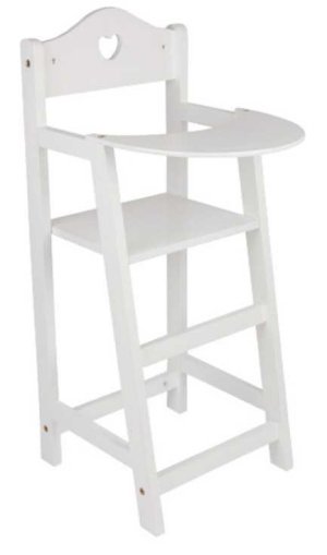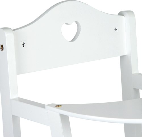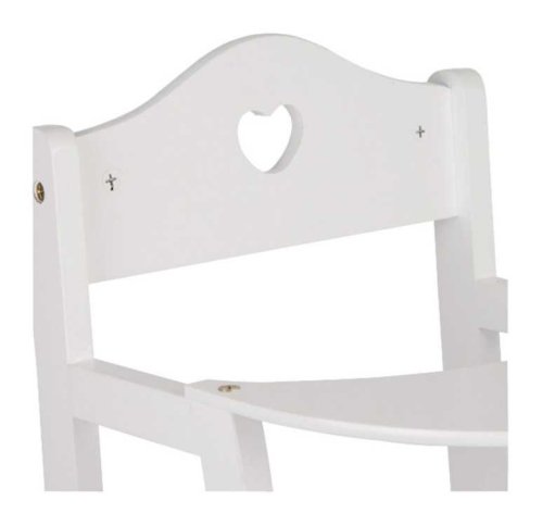 Táto jednoduchá drevená jedálenská stolička rozbúši srdce všetkých bábik. Natretá bielou farbou a zdobená malým výrezom srdca je štýlovým doplnkom, detskej izbičky. Vďaka svojmu neokázalému štýlu sa táto jedálenská stolička ideálne hodí do detských izieb, ale aj do obývacích izieb. Hlavné vlastnosti: podporuje aktívne hranie a rozvoj sociálnych zručností stabilnej konštrukcie, kvalitné spracovanie vhodné aj do škôlok