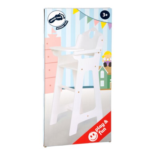 Príďte na večeru, prosím! Táto stolička pre bábiky zo stabilného, bielo lakovaného dreva okamžite zapôsobí na zodpovedných rodičov bábik! Táto vysoká stolička s roztomilým srdiečkom na operadle je štýlovým doplnkom do kútika pre bábiky a so svojou výškou 63 cm je vhodná k jedálenskému stolu! Výrobok vyžaduje montáž. Dodávané s obrázkovým návodom na zostavenie. Hlavné vlastnosti: stolička pre bábiky vhodná k jedálenskému stolu