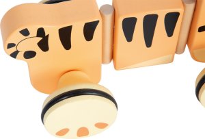 Roztomilý tahací tygřík potěší všechny malé objevitele. Vyrobený ze 100% certifikovaného dřeva FSC®, je nejen ekologický, ale i mimořádně odolný. Díky pogumovaným, tichým kolečkům se hladce pohybuje po podlaze, zatímco flexibilní třídílné tělo se při tažení krásně vlní. Součástí je i tahací provázek, který dětem usnadňuje vedení tygříka a zároveň podporuje jejich samostatnost při chůzi. Jeho přátelský design v safari stylu si děti okamžitě zamilují. Tento veselý společník podporuje rozvoj motoriky, rovnováhy i první krůčky těch nejmenších.Kvalitní zpracování a detailní ilustrace dělají z tygříka oblíbenou hračku, která se skvěle doplňuje s dalšími hračkami z kolekce Safari. Hlavní vlastnosti: robustní provedenípodporuje rovnováhu a koordinaci pohybůrozvíjí motorické dovednostis tichými pogumovanými kolečkyinspiruje dětskou kreativitu a představivost Značka a certifikát FSC® (Forest Stewardship Council) zaručuje, že dřevo, ze kterého byl produkt vyroben, nebylo vytěženo nelegálně a pochází z lesů obhospodařovaných šetrným či přírodě blízkým způsobem, ve kterém jsou dodržovány přísné environmentální a sociální požadavky. Značka FSC® na výrobku znamená, že svým nákupem pomáháte chránit lesy a podporujete šetrné, odpovědné či přírodě blízké hospodaření, díky kterému jsou naše lesy stabilnější, zdravější, mají přirozenou druhovou skladbu a lépe odolávají negativním následkům klimatických změn.