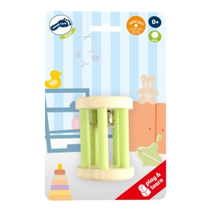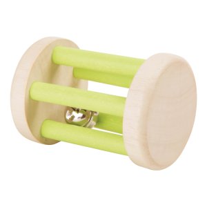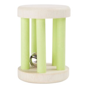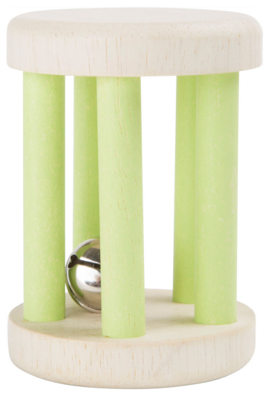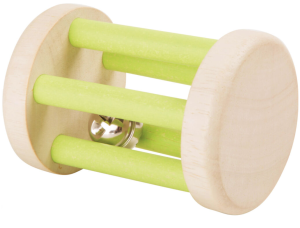 Drevená zvuková hrkálka s rolničkou v tvare valca.